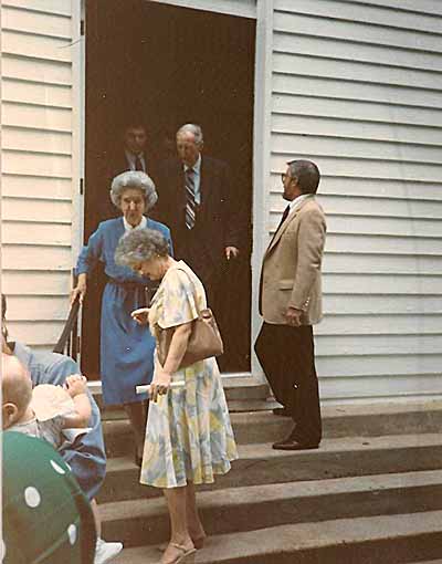 Shelby Dixon (doorway) Rev. Bill Torkell (steps) Lucy Dixon (blue dress) Wilma Moore